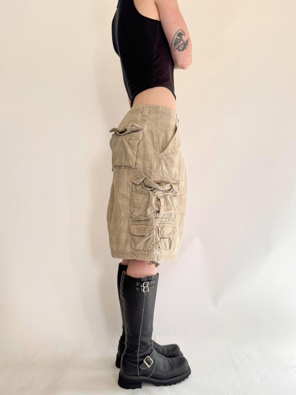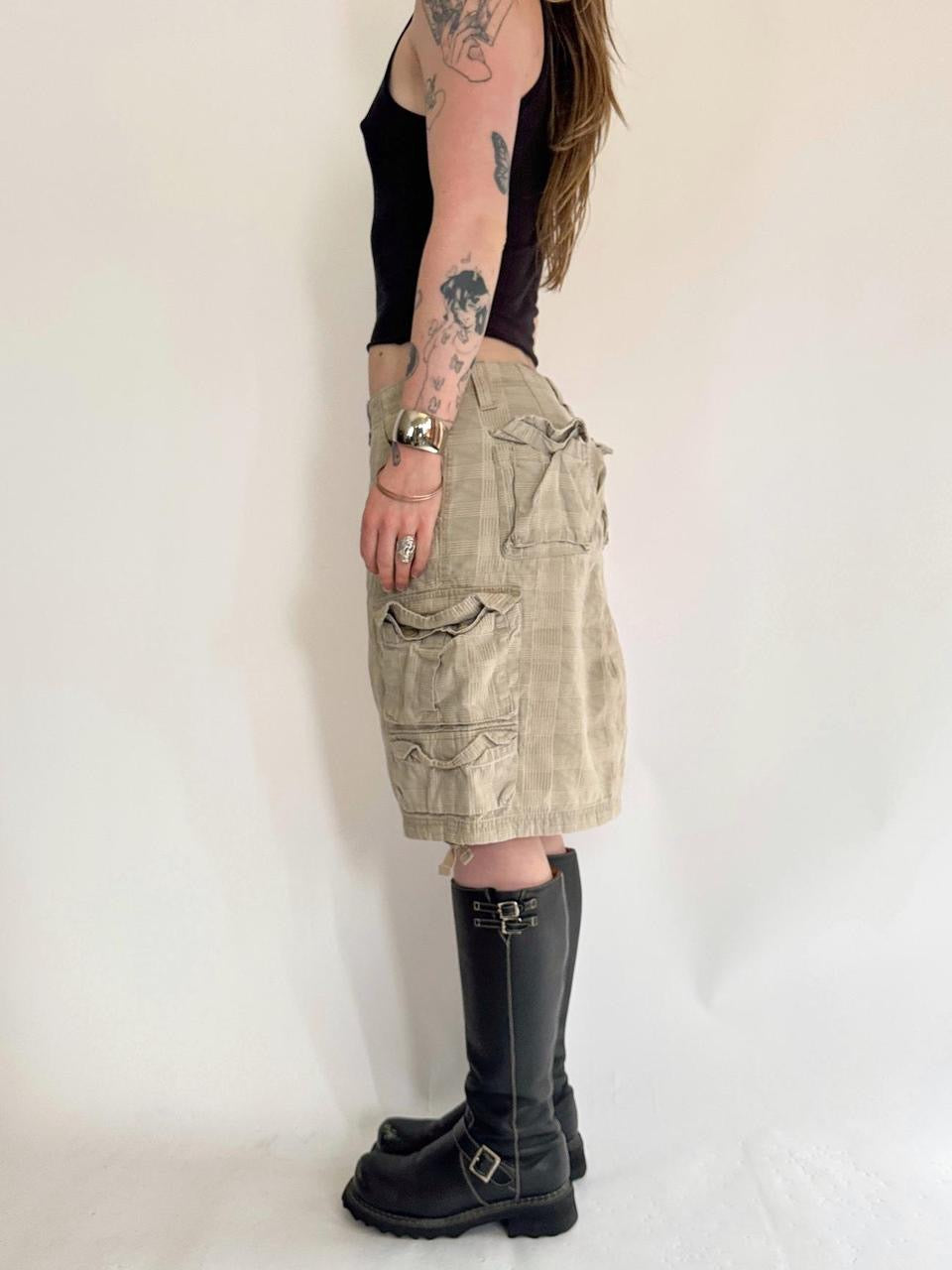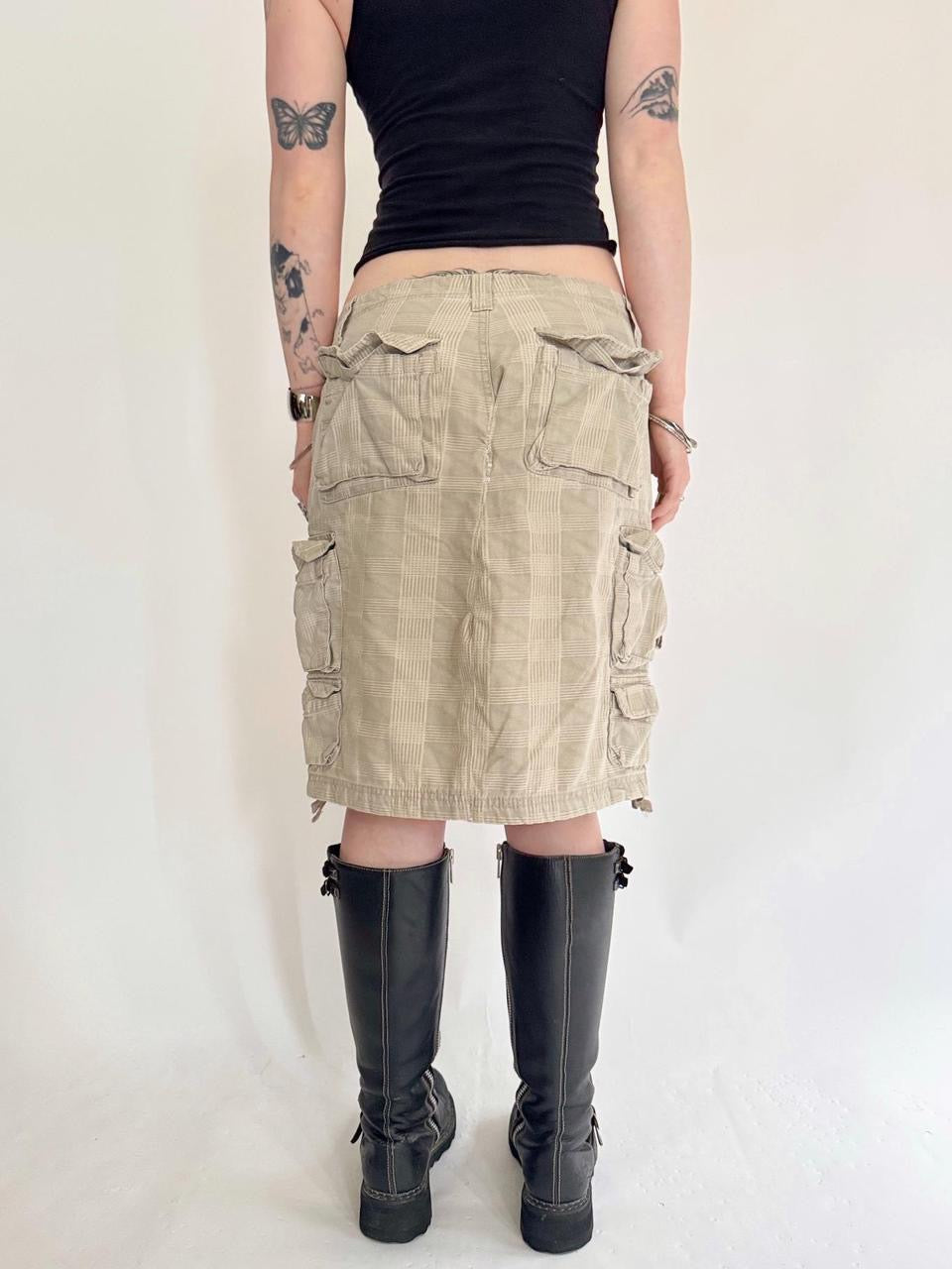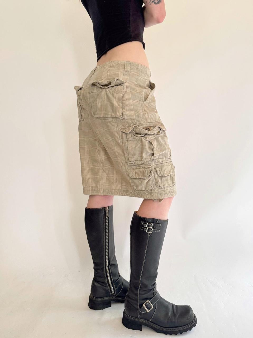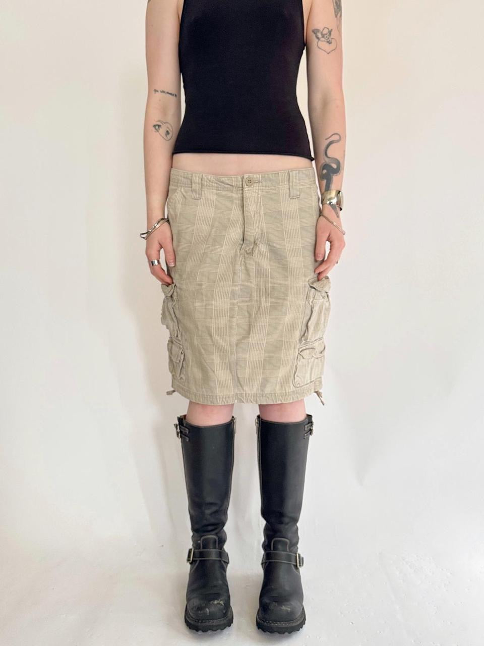 vintage reworked “arizona” plaid cargo low rise midi skirt.